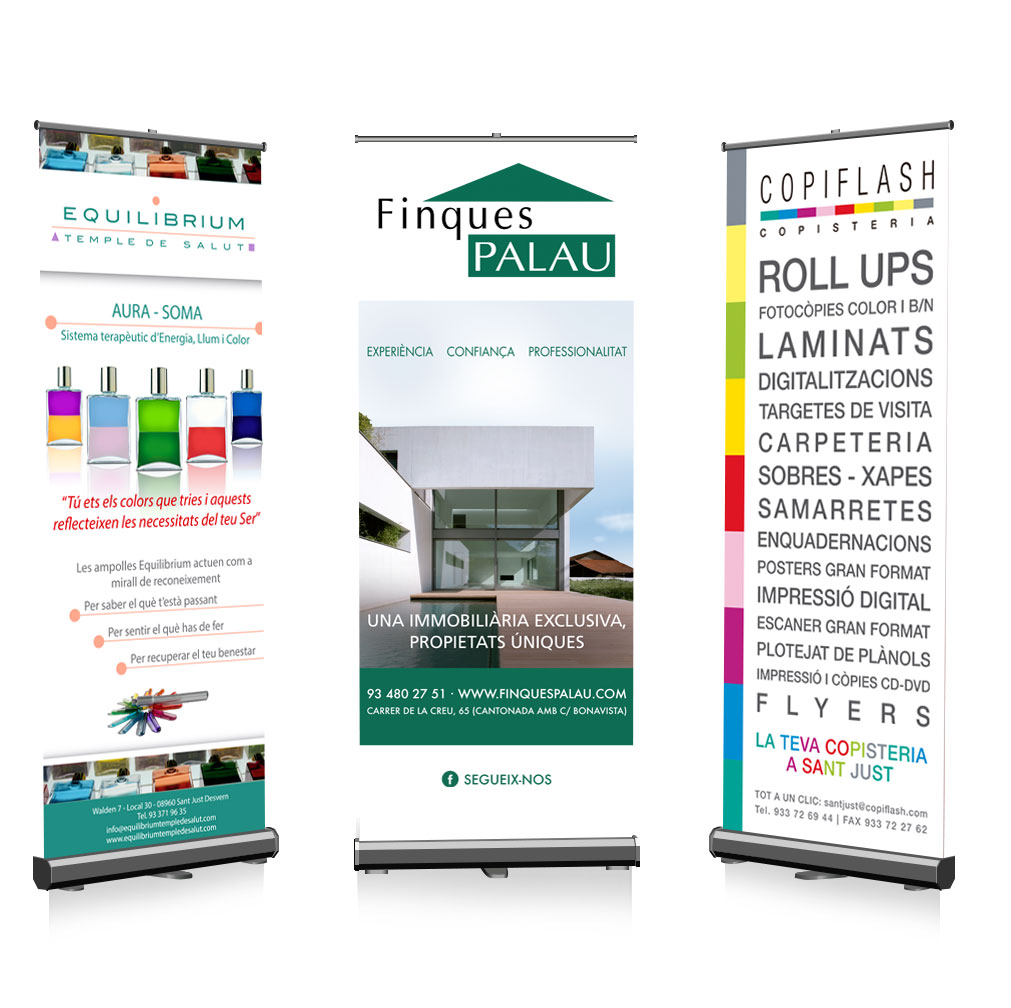 Gestió i assessorament en el procés de producció de tots els productes de marxandatge. Tant impressió digital com òfset. Displays, rollups, gran format, lones, pancartes, objectes personalitzats … Pressupost sense compromís.